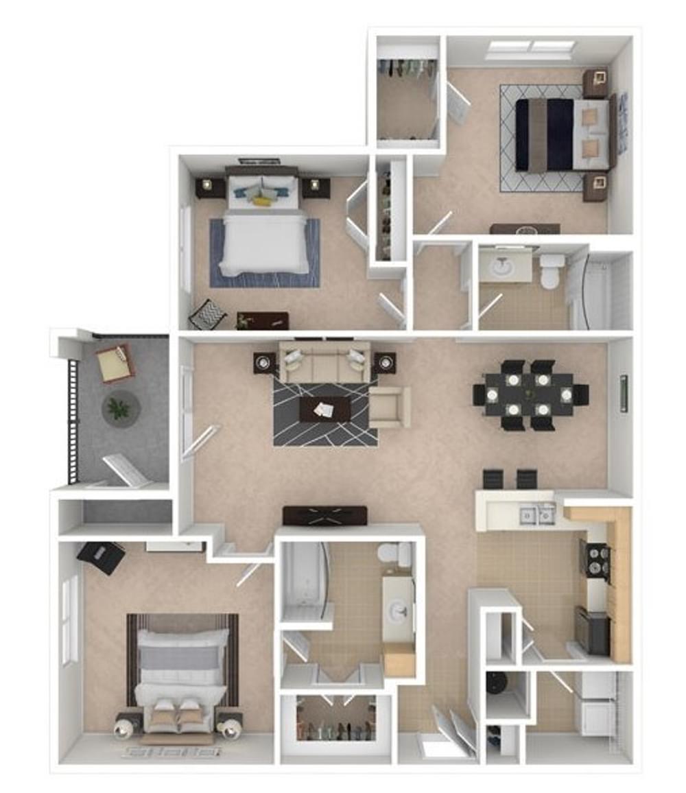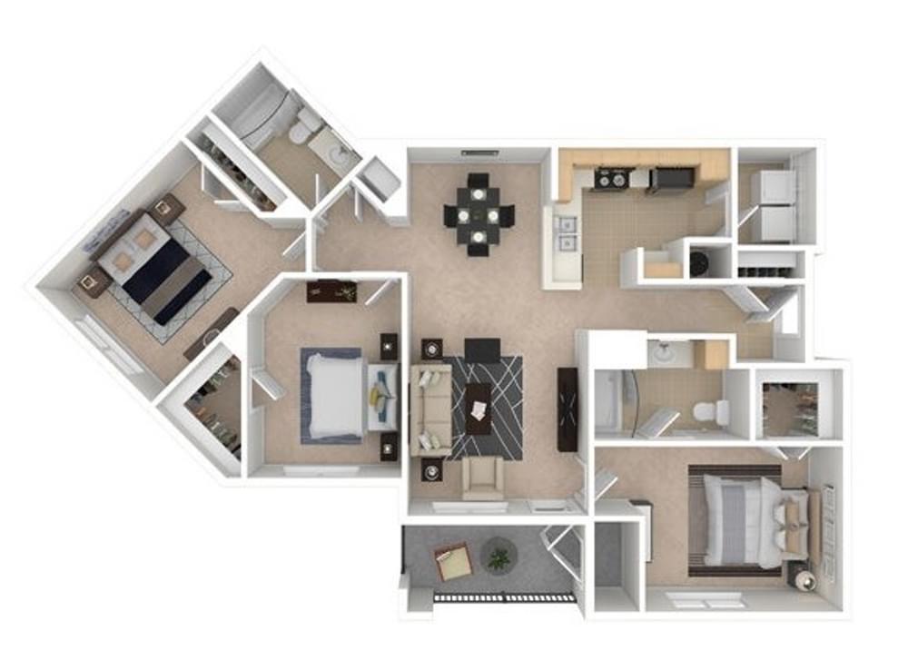 Unit Type3 Bed / 2 BathFloor Area1,297 sq. ft.AvailableTodayStarting at$1,899 / mo